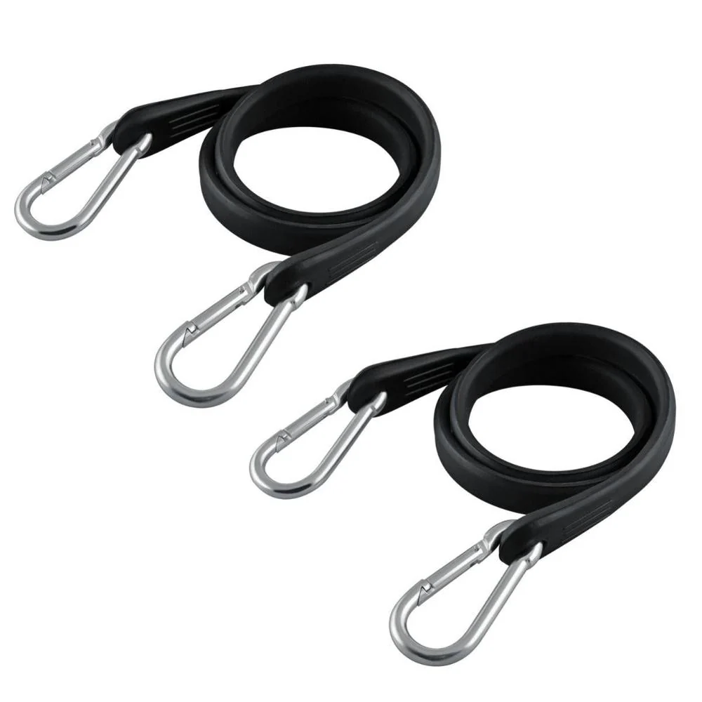 Rubber bungee cords with metal carabiner clips for secure setup