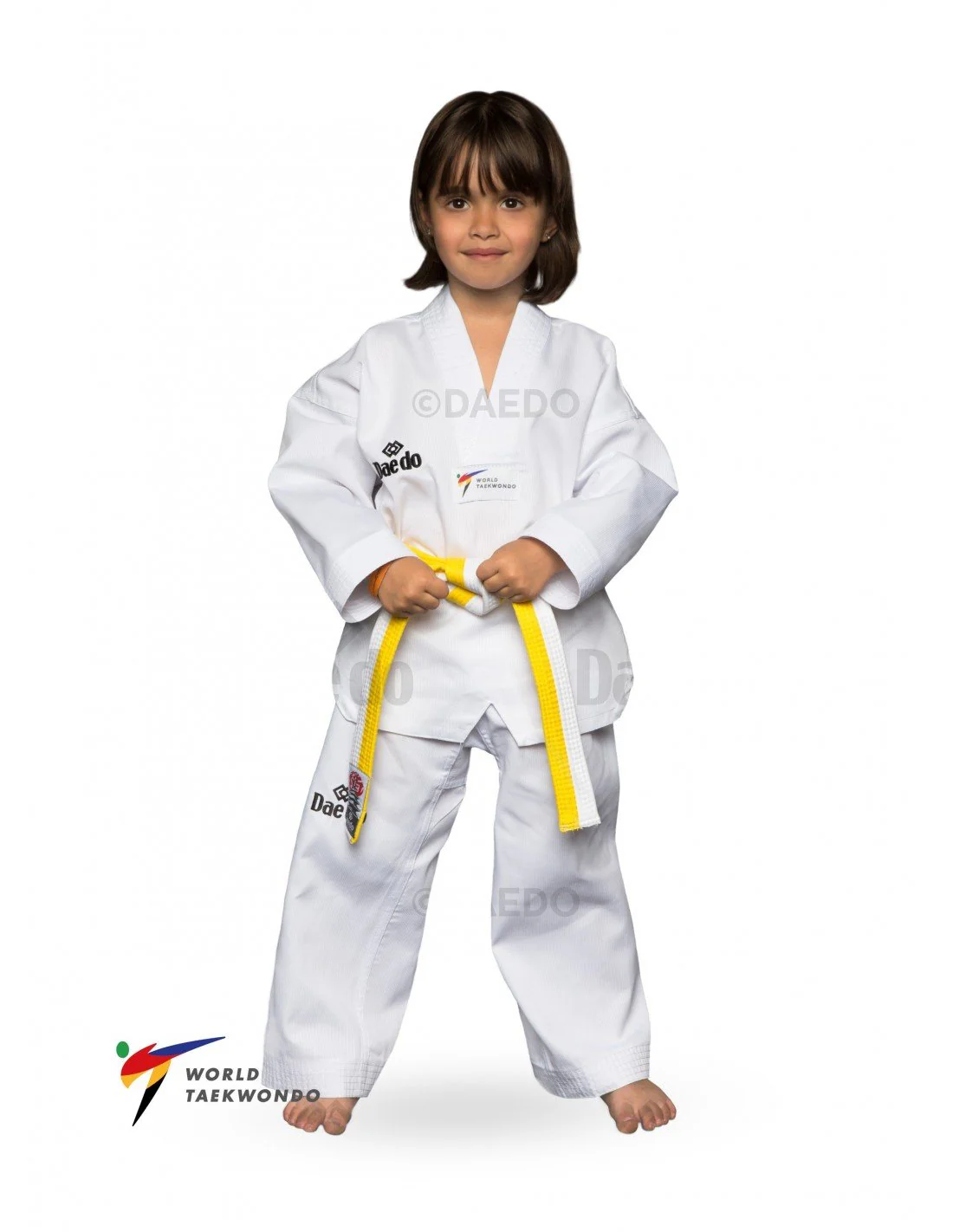 Daedo dobok WT BASIC White neck with no letters on the back. Trousers with elastic waist and cord. Comfortable and lightweight. Ideal for beginners. Composition: Polyester 80%, Cotton 20%