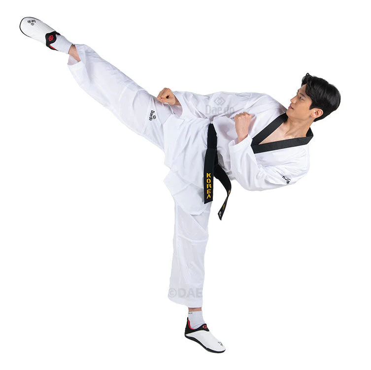 Daedo dobok WT ULTRA II, TA20057 Made from an ultra-light new fabric that allows faster movements. The dobok is completed with ultra transponderable fabric on the shoulders and on the back of the pants. Wide trousers with elastic waist. 100% polyester. WT approval
