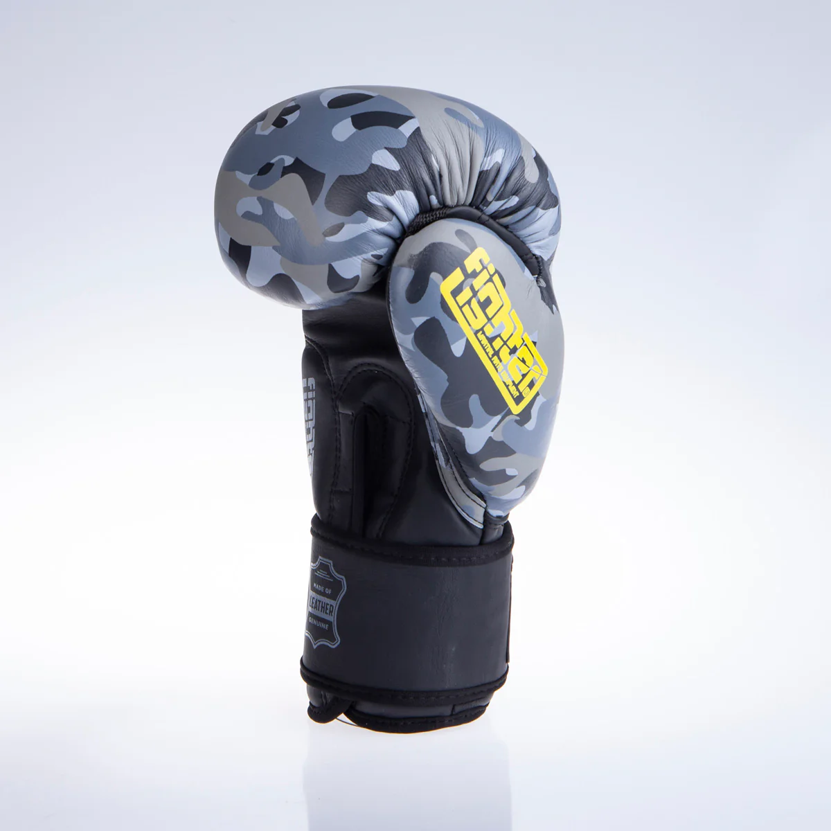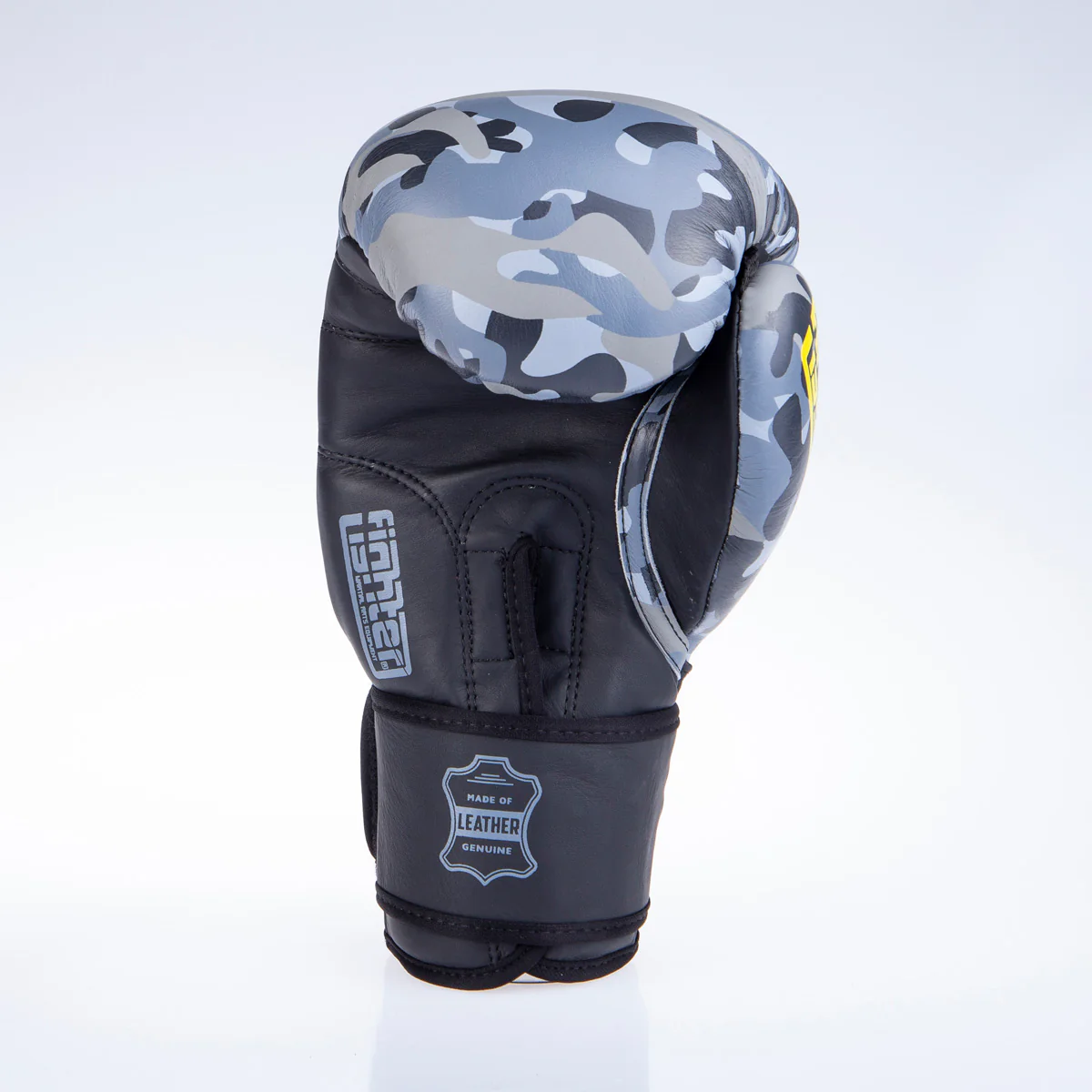 Fighter Boxing Gloves SIAM – grey camo Thanks to high quality leather of these Fighter boxing gloves, longevity, comfort and safety is guaranteed. They have super soft lining on the inside to ensure extra comfort. Thumb is attached to the rest of the glove for maximum safety. Ergonomic shape High quality leather Extra soft lining