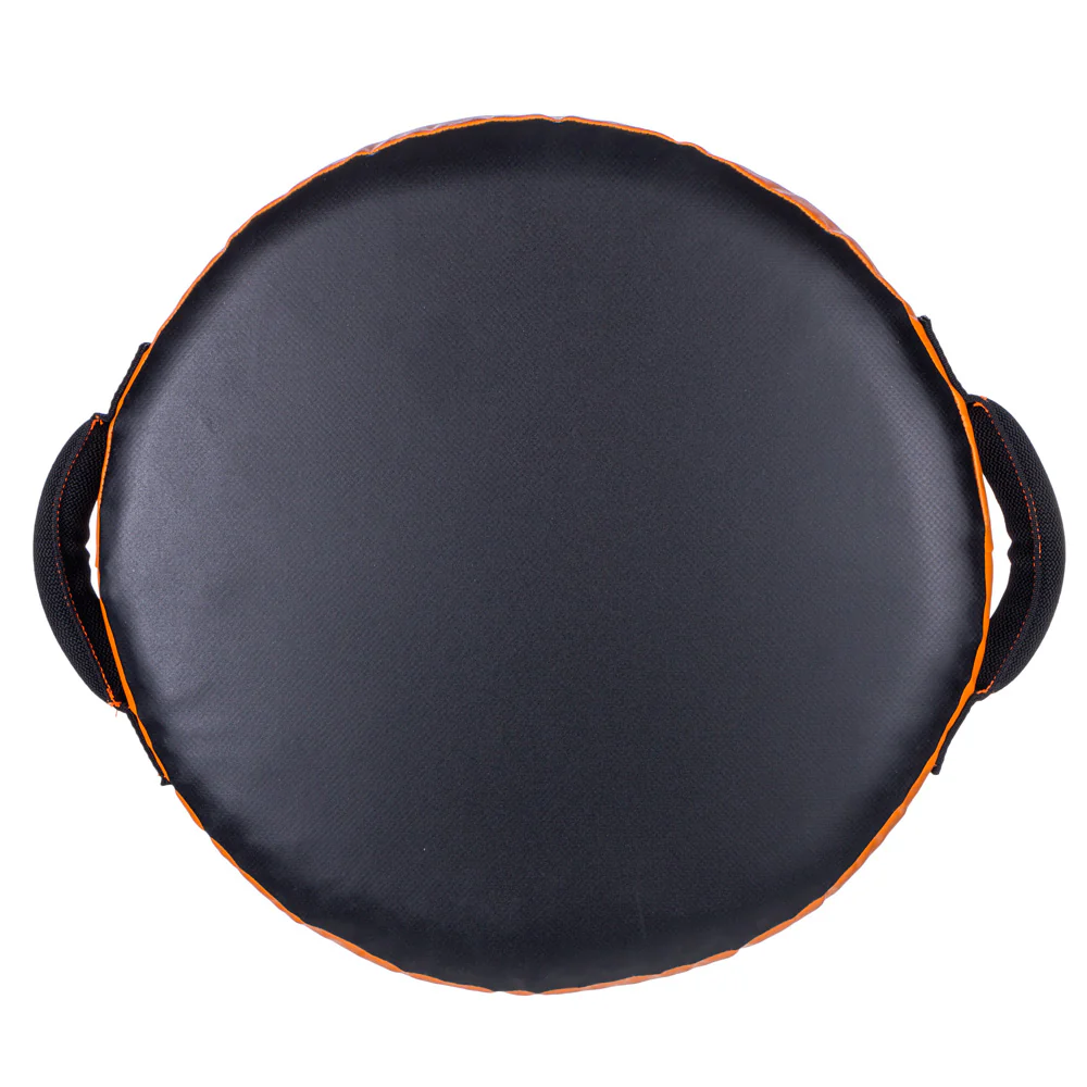 Fighter Round Shield – black/orange Fighter Round Shield provides unlimited training options for its light weight and quality materials used to produce this product. It has two padded handles on both sides. Dimensions: diameter 40 cm, thick 15 cm Made of durable vinyl Padded straps on both sides Lightweight Made in Czech Republic, Europe