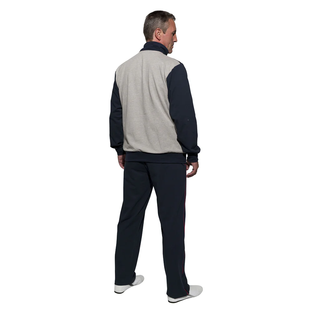 The TOP TEN High class processed fitness suit without lining. Jacket and pants have 2 open side pockets and carry both the TopTen patch. Jacket with elbow patches in sleeve color. Material: 95% cotton / 5% elastane.