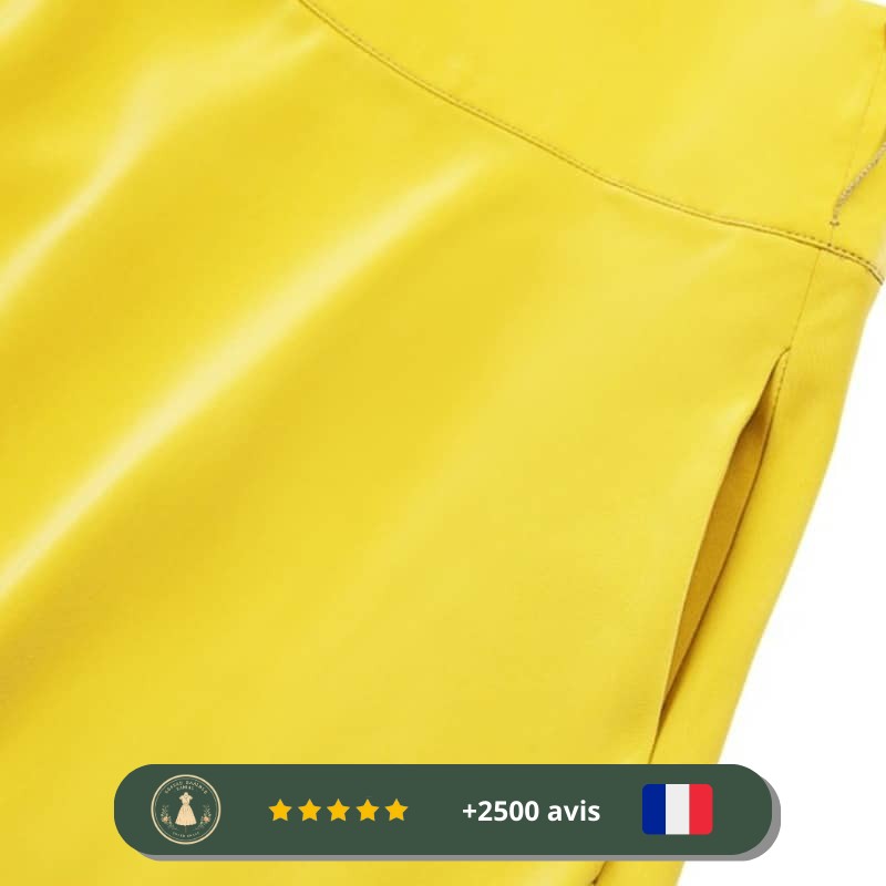 La légèreté évanescente de la mousseline de soie confère à cette jupe un mouvement fluide et une douceur incomparable, rappelant les tendances emblématiques de l’époque, où la liberté de mouvement se mêlait à la sophistication vestimentaire.