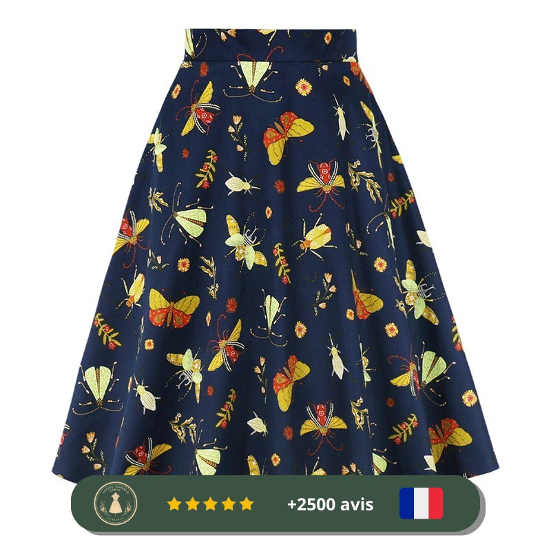 En un mot, c’est l’ajout parfait à votre collection de vêtements pour vous démarquer avec cette jupe plissée à imprimé des insectes style années 30, qui vous envoûte d’un charme rétro incomparable.