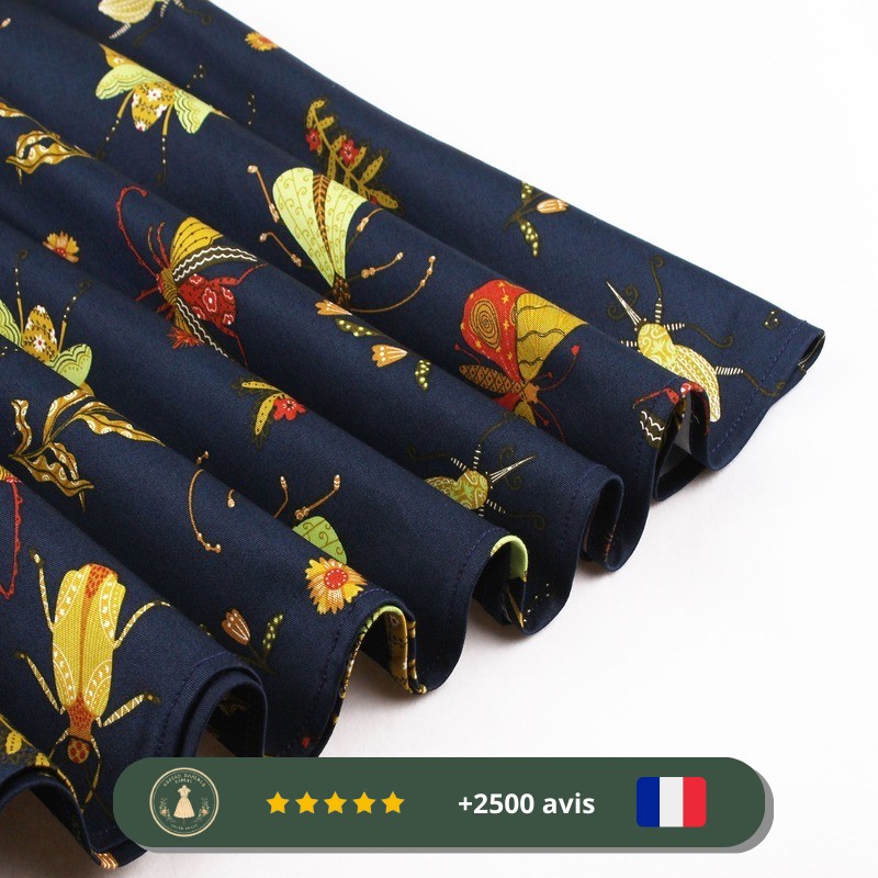 Envie d’ajouter une touche d’élégance vintage à votre style? Adoptez notre jupe plissée à imprimé des insectes style années 30, une pièce qui allie avec brio nostalgie et modernité. Distinctive pour son imprimé insecte captivant, elle saura vous séduire par son bleu profond et son flair d’époque emblématique.
