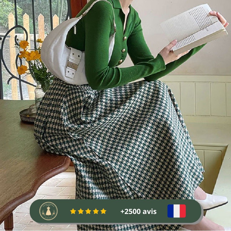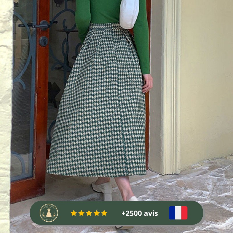 Découvrez le charme vintage avec la Jupe verte des années 30 à motifs de pieds de poule