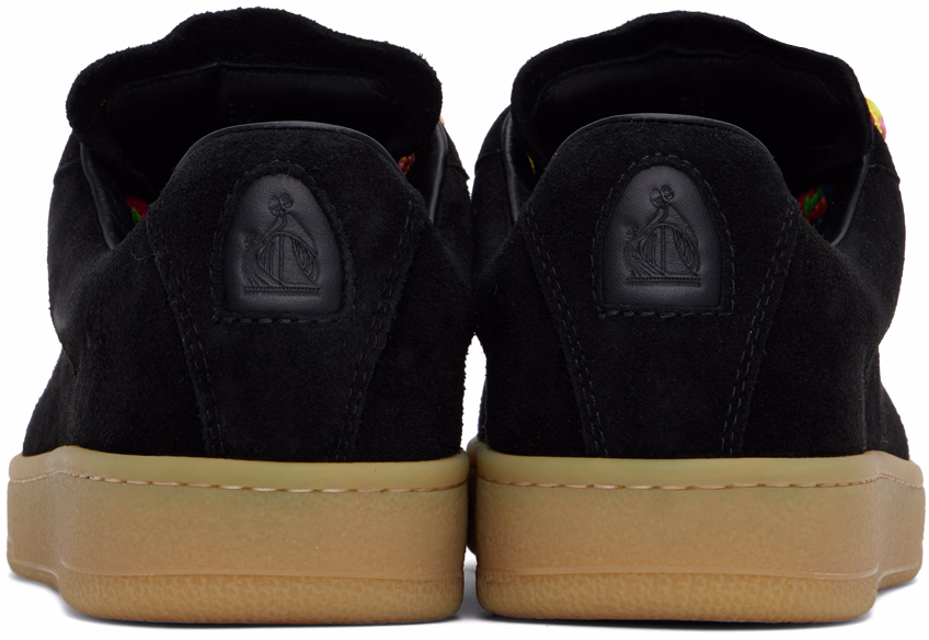 Composition : Baskets basses noires en suède de veau. · Laçage · Écusson à logo à la languette rembourrée · Col rembourré · Estampe du logo sur le côté extérieur · Logo gaufré au col du talon · Doublure en cuir de veau grainé · Semelle crantée en caoutchouc