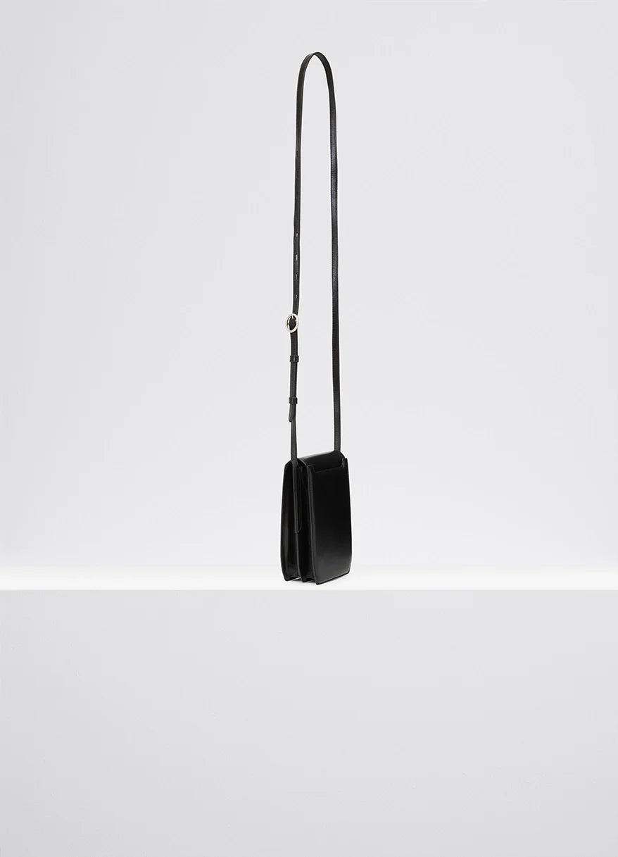 – Sangle réglable – Hauteur de la sangle : 51 cm / Longueur : 11,5 cm / Largeur : 18 cm / Profondeur : 5,5 cm – Double fermeture magnétique – Deux compartiments principaux (pouvant contenir de petits accessoires comme un smartphone ou un portefeuille) – Poche arrière à rabat – Doublure contrastée en cuir […]