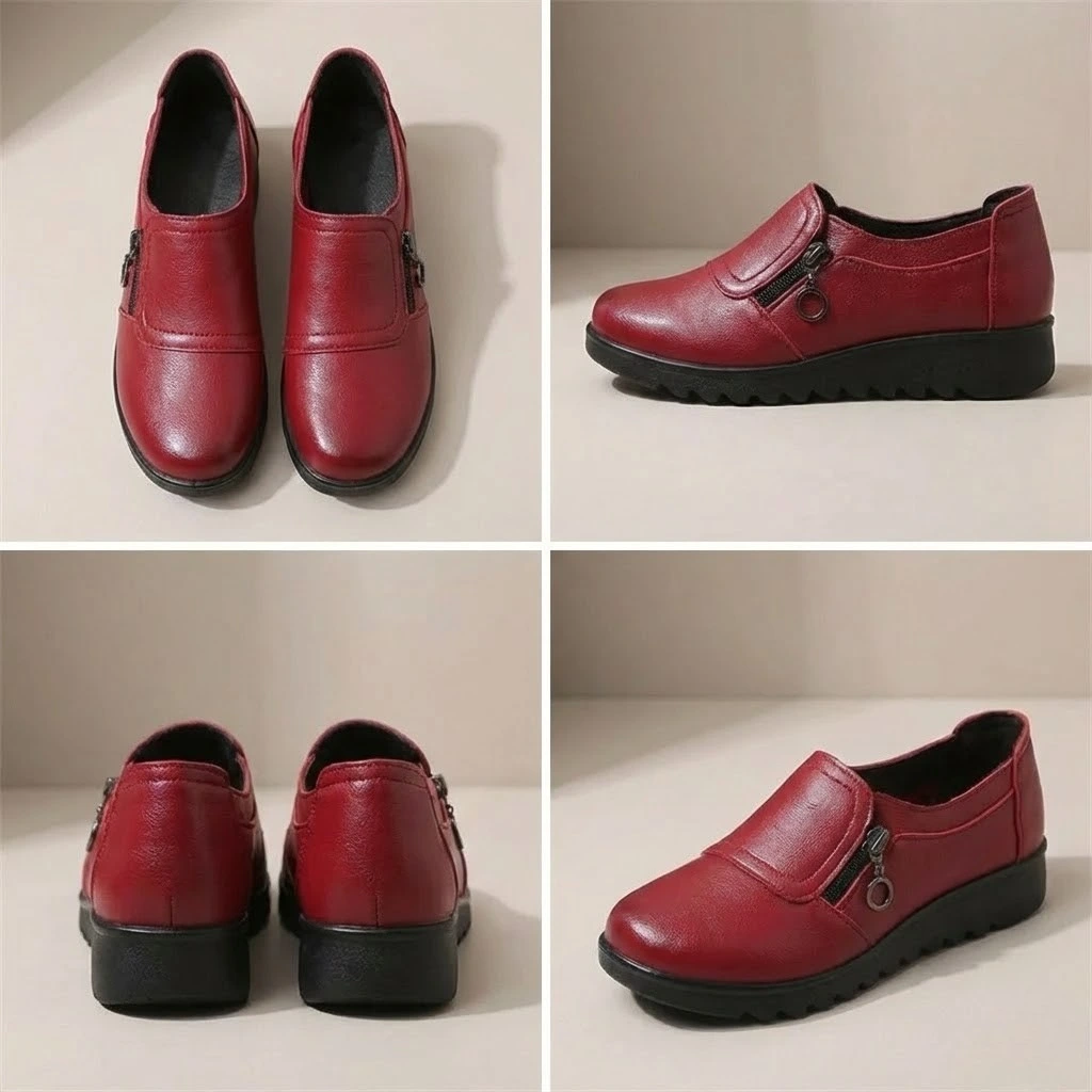 Mocassin Femme Compensé en Simili Cuir avec Zip Latéral