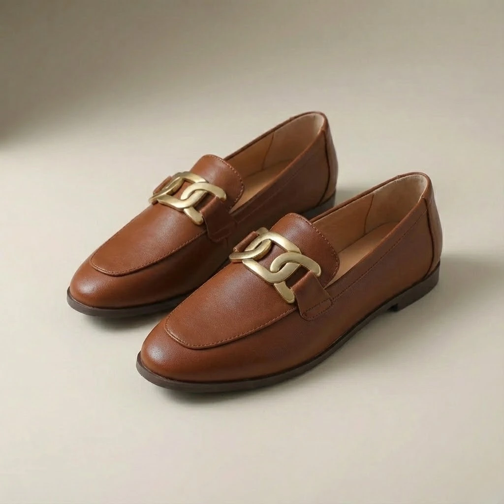 Mocassin Femme à Chaîne Dorée : L’Élégance British à vos Pieds
