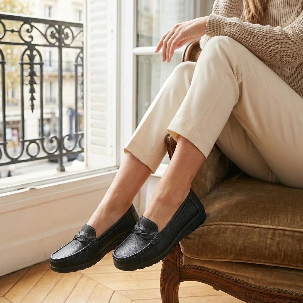Mocassin Femme en Cuir Souple Facile à Enfiler