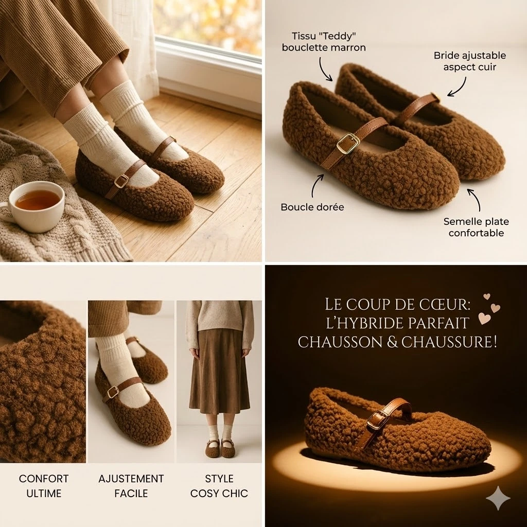Son design minimaliste avec bride apporte une touche moderne, tandis que sa matière douce et son intérieur chaud assurent un bien-être immédiat dès l’enfilage.