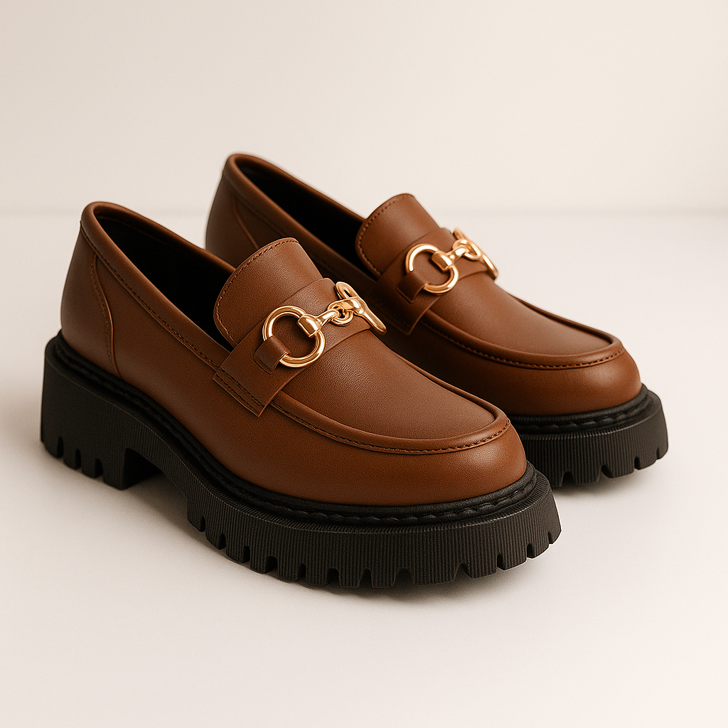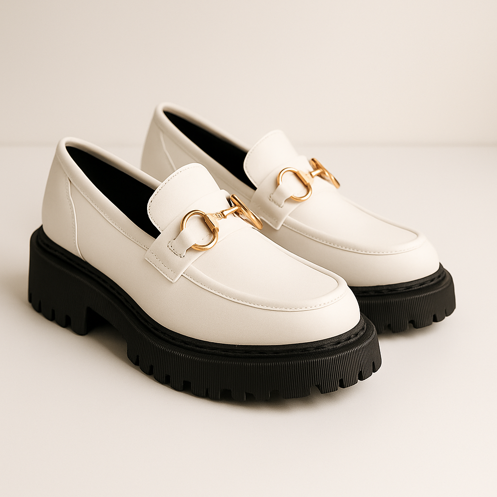 Adoptez le charme intemporel du style britannique avec ces mocassins femme à chaîne dorée, un modèle qui conjugue raffinement et modernité. Leur design minimaliste et structuré s’inspire des classiques londoniens, tandis que la chaîne dorée apporte une touche de luxe subtile. Disponibles en plusieurs coloris élégants , blanc crème, marron caramel, gris, et noir ils s’accordent facilement avec toutes vos tenues, du jean casual au pantalon tailleur.