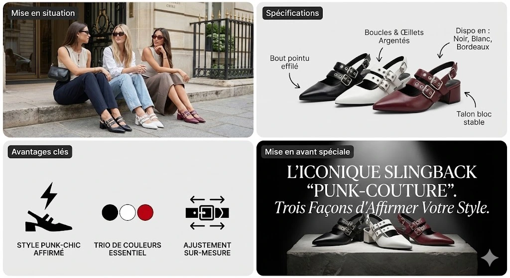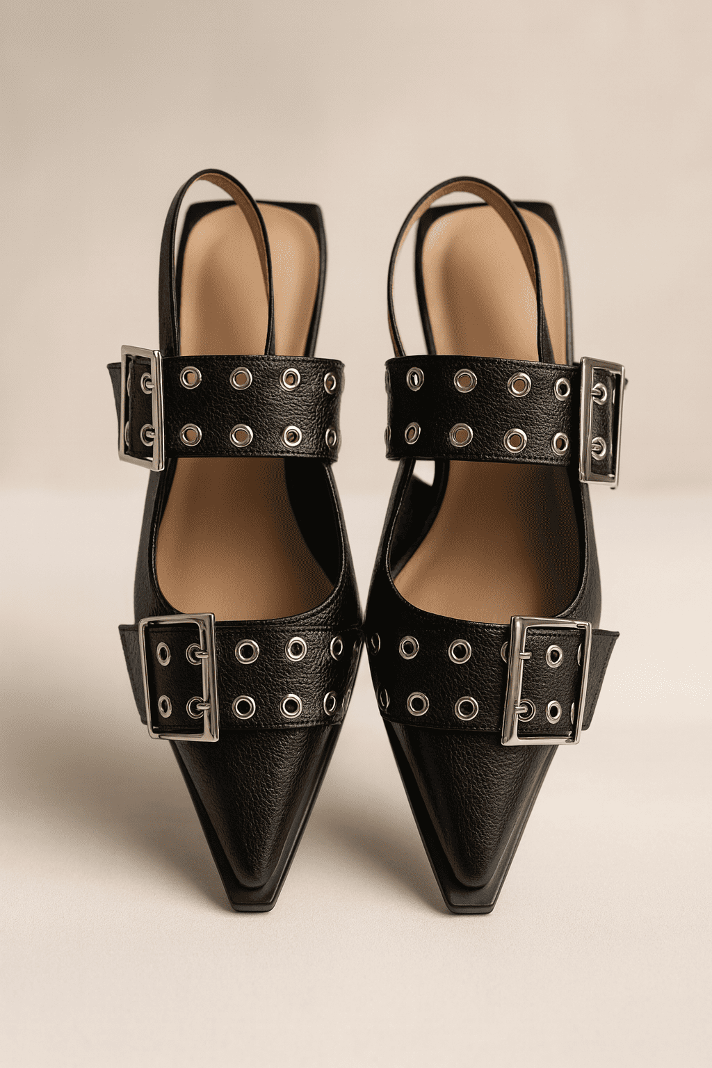 Osez affirmer votre personnalité avec ces escarpins slingback femme à double boucles. Leur design audacieux, associant pointes fuselées et détails métalliques, en fait des chaussures qui captent l’attention à chaque pas. Que vous optiez pour le noir intemporel, le blanc éclatant ou le bordeaux profond, vous tenez là la paire parfaite pour exprimer votre style avec caractère.