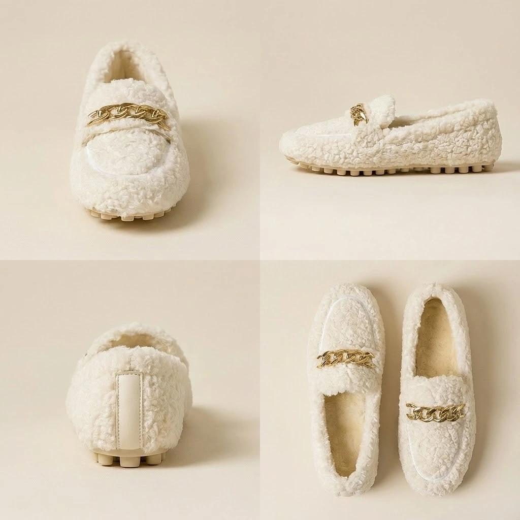 Craquez pour ce mocassin femme fourré luxe, pensé pour celles qui recherchent une chaussure à la fois élégante, chaude et ultra confortable durant la saison hivernale. Inspiré des tendances cocooning, ce modèle associe une fourrure extérieure douce, une doublure en peluche chaude et un design slip-on pratique qui facilite l’enfilage au quotidien.