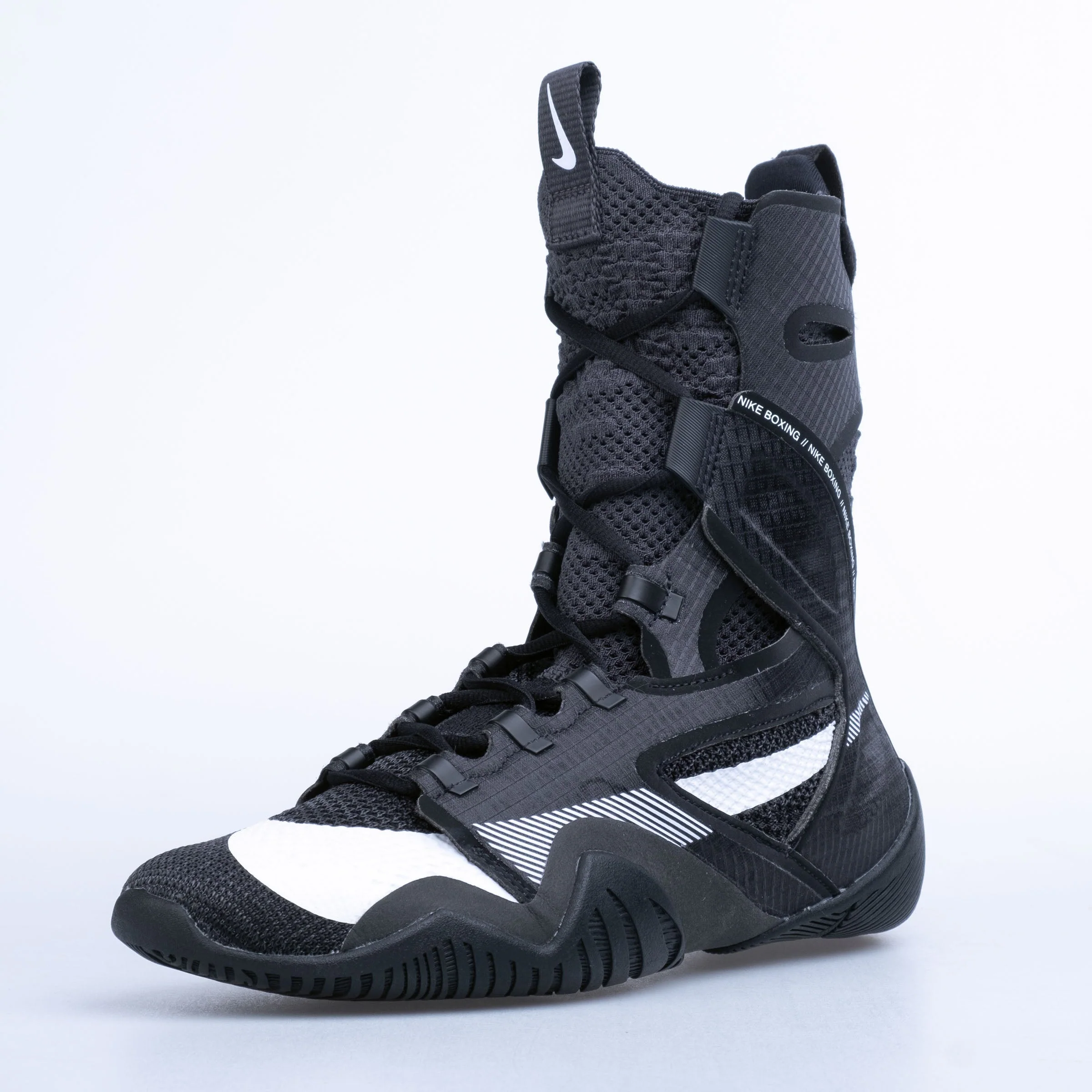 Nike HyperKO 2.0 Boxing Shoes – Lightweight Support Overlays and provides support through a mobile package. Sock Like Fit Zonal stretch and lockout provides a seamless fit through a wide range of motion. Form Fitting Cuff An industry first cuff construction provides enhanced performance and sensation.