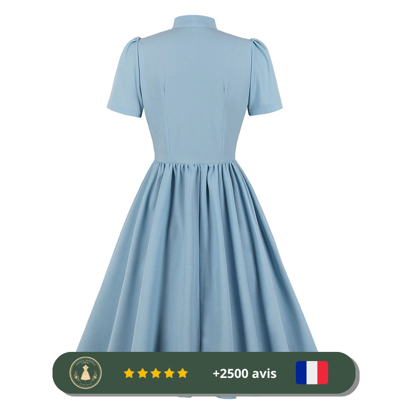 Dévoilez un look à couper le souffle avec notre Robe années 30 charleston bleue évasée, un hommage exquis au faste des années folles. Cette somptueuse tenue bleue est embellie d’un nœud délicat au niveau du cou et met magnifiquement en valeur la silhouette grâce à sa taille marquée.
