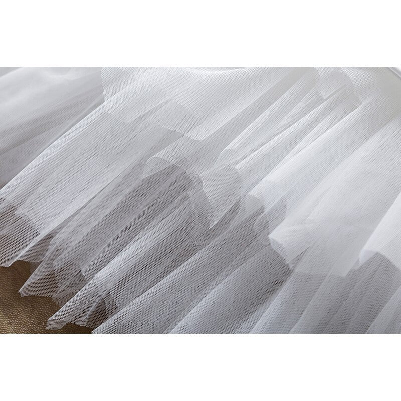 Cette robe bébé en dentelle est l’alliée pour célébrer un mariage ou toute cérémonie importante. Le bustier travaillé avec soin et détail accompagne une jupe en tulle à plusieurs volants. Le tout crée un volume aérien qui attire tous les regards des invités de cette journée spéciale. Le nœud en satin à la taille apporte une beauté digne des plus belles occasions.