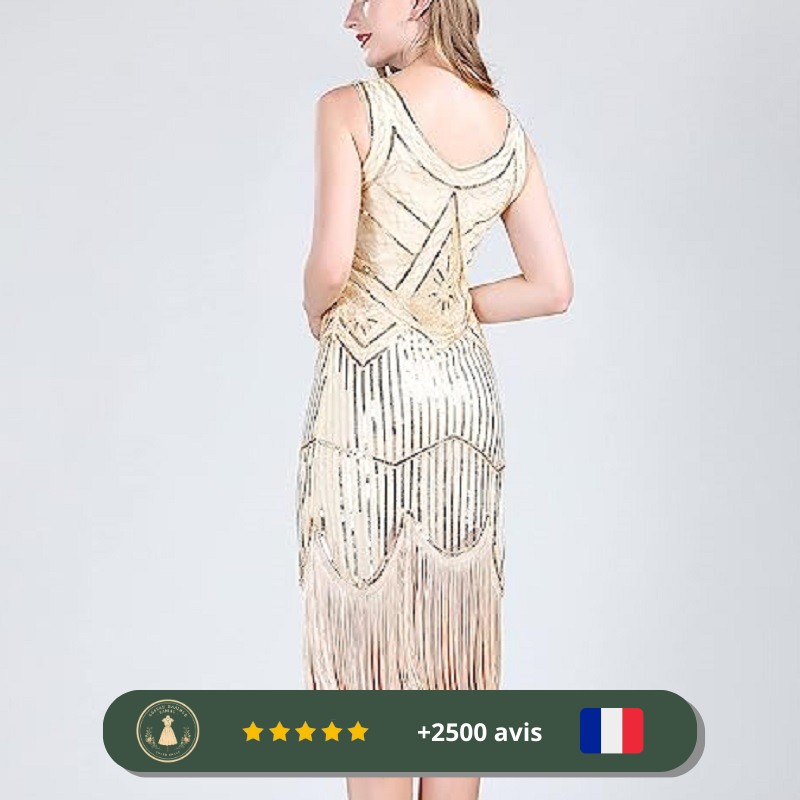 Éclat et élégance avec la robe beige à paillettes des années 20