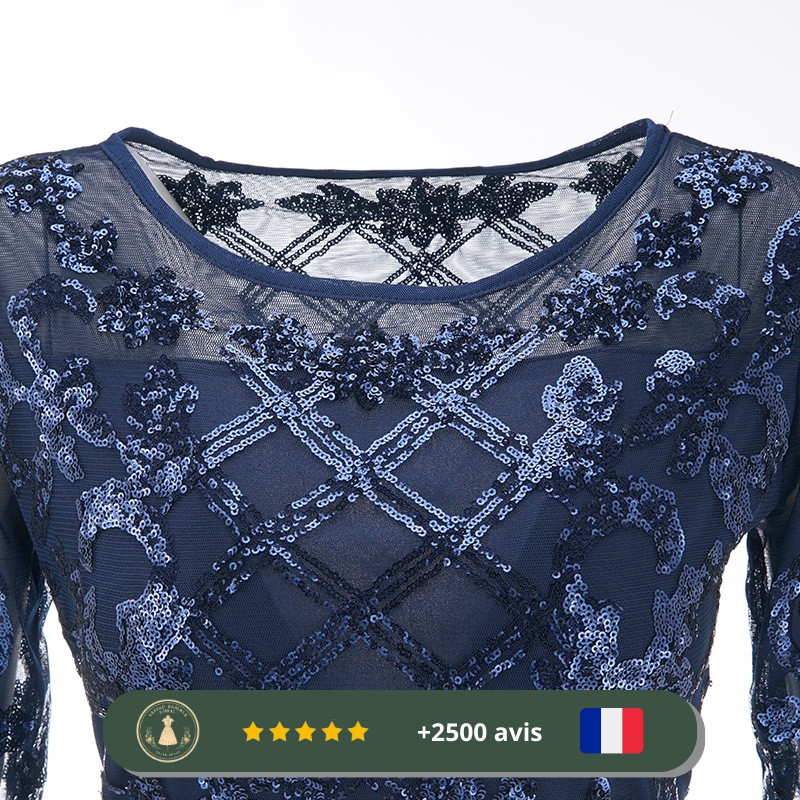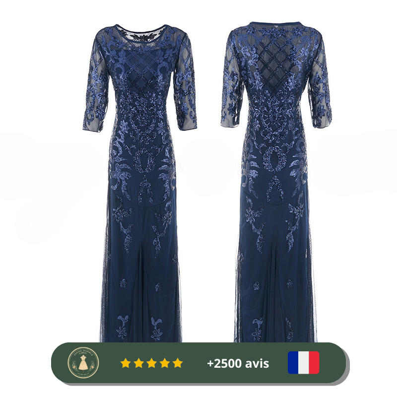 Plongez au cœur du glamour avec une robe bleue longue des années 30 pour mariage, le choix parfait pour celles qui rêvent de scintiller sous les projecteurs d’une célébration nuptiale. Cette pièce maîtresse, dotée d’une élégance à couper le souffle, incarne à merveille le chic des années folles grâce à ses ornements de perles brillant d’un bleu profond.