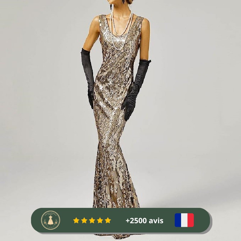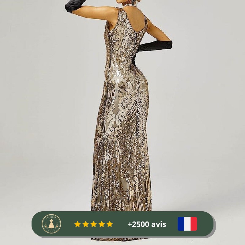 Imaginez-vous faisant votre entrée dans une robe longue dorée brillante des années 30 pour mariage, capture de l’essence du glamour d’époque. Chaque détail de cette pièce est pensé pour sublimer votre allure et apporter un éclat inoubliable à votre célébration. Conçue pour les amoureuses du style vintage, cette robe est l’alliée de celles qui désirent insuffler une élégance intemporelle à leur grand jour.