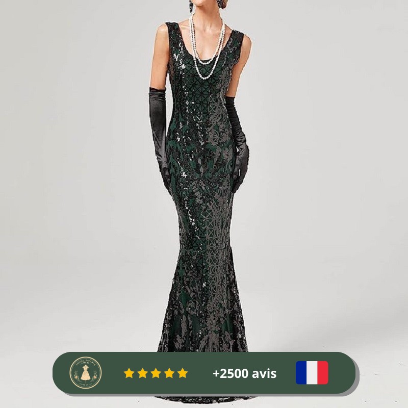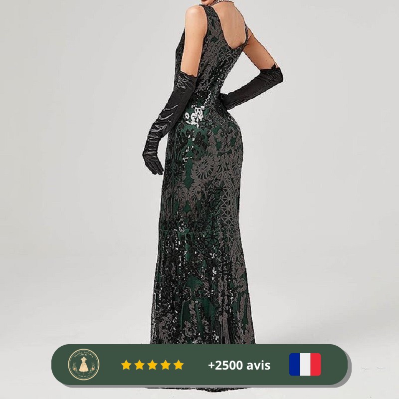 Robe longue verte brillante des années 30 pour mariage