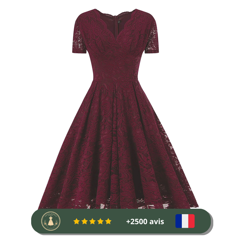 Découvrez le charme rétro de notre robe rouge froncée en dentelle années 20