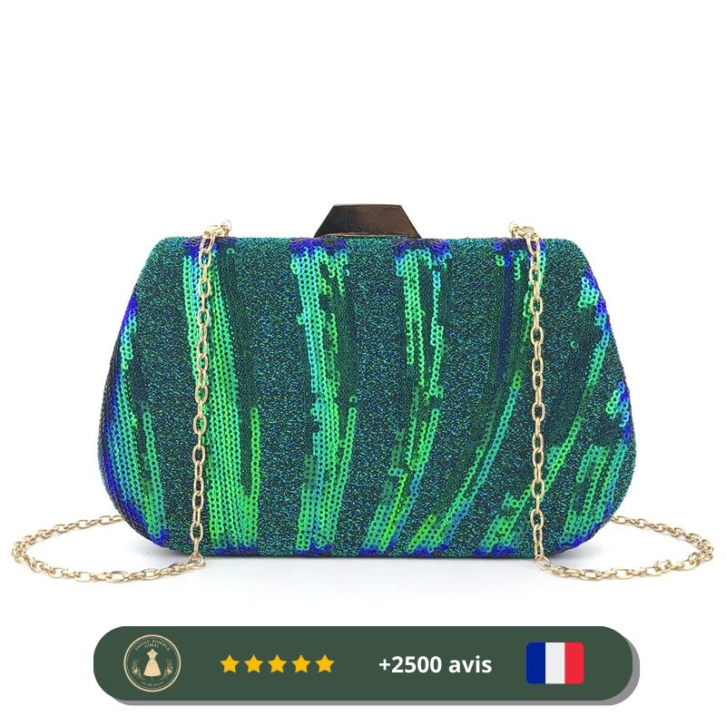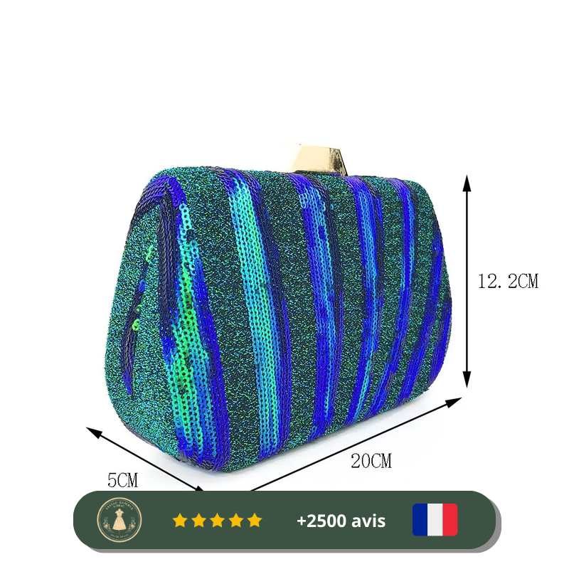 Ajoutez une pincée d’éclat à votre garde-robe grâce à ce sac style années 30 à paillettes pour femmes, une création conçue pour sublimer vos tenues de gala. Brillant de mille feux avec son allure chatoyante bleu-vert et ses paillettes étincelantes, ce bijou d’accessoire est la pièce maîtresse qui manquait à votre collection.
