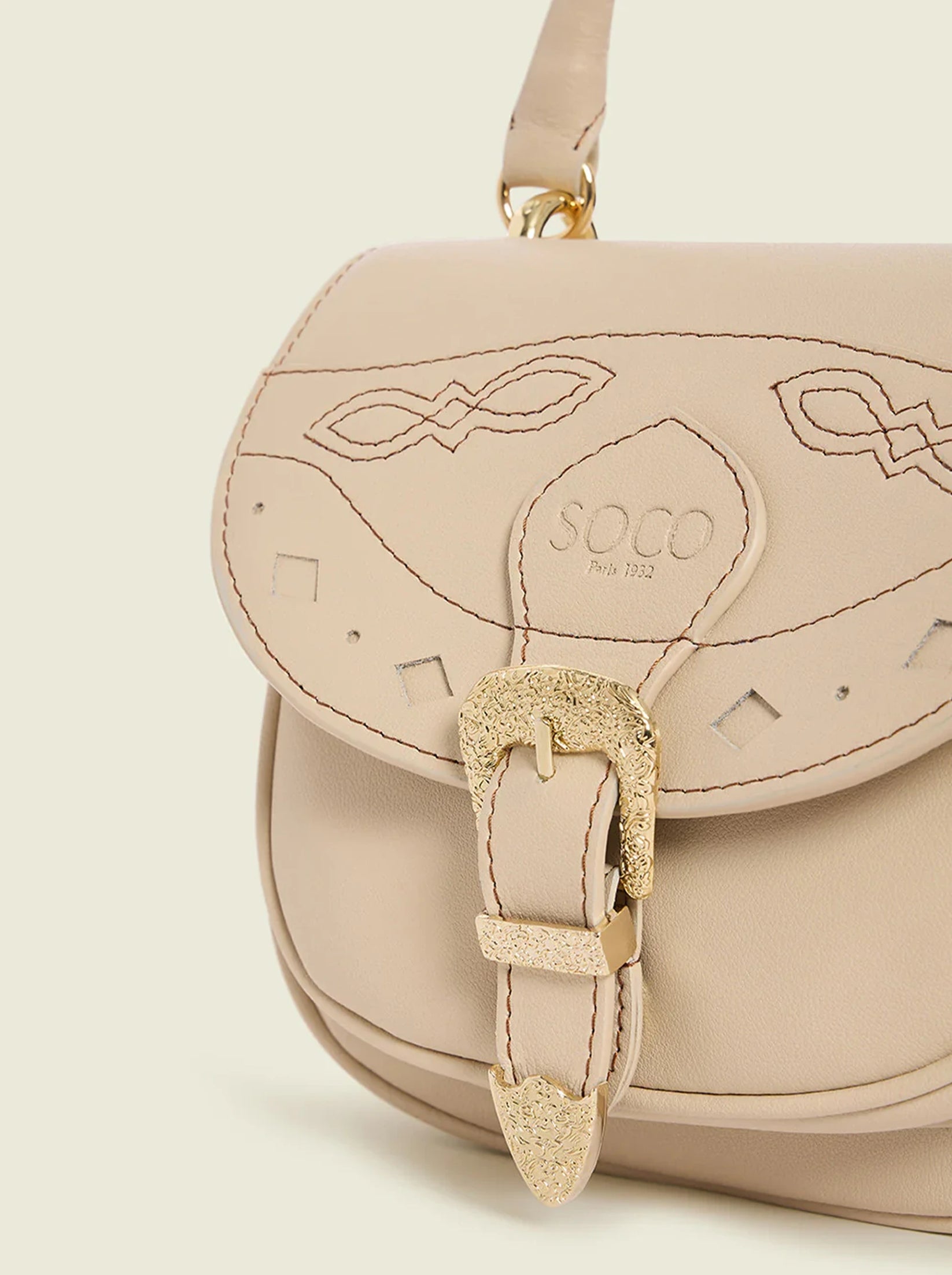 Matière : cuir lisse de bovin Doublure intérieure en toile (65 % polyester, 35 % coton) Porté main, épaule ou croisé avec anse cuir et chaîne amovibles Dimensions : Corps : L 20 cm × H 16 cm × P 8 cm Longueur de la bandoulière et de la chaîne : 100 cm Largeur de […]