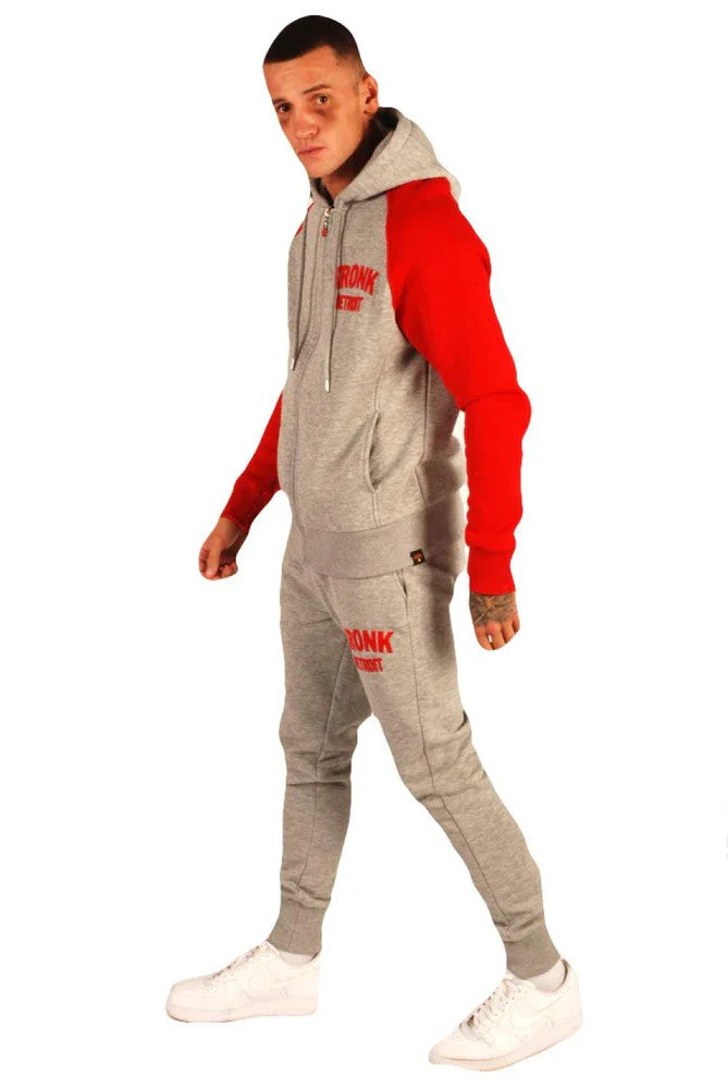 Sweat à capuche zippé Kronk Detroit – Gris/Rouge
