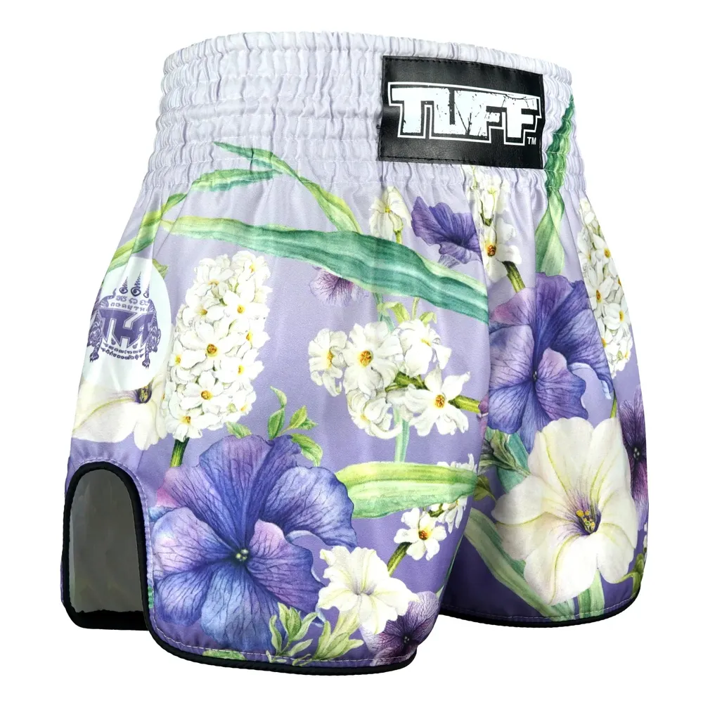 Train with calm. Strike with clarity. The TUFF Purple An-Chan Muay Thai Shorts are inspired by the graceful yet resilient Butterfly Pea flower (An-Chan)—a symbol of focus, inner strength, and refined power in Thai culture. Part of the Floral Spirit Collection, these shorts are designed for fighters who embody precision, elegance, and purpose in every move.